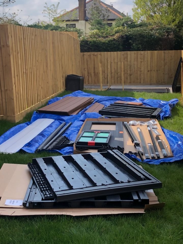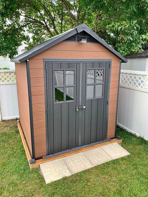 Before the shed arrived, we laid a flag base for the shed. The shed arrived early so we started assembling it right away. It took the two of us 4 hours to build it. There were some tricky parts of the assembly process, but as experienced DIYers, there was nothing we couldn't fix. Overall, we are very happy with this purchase and would gladly recommend it to anyone.