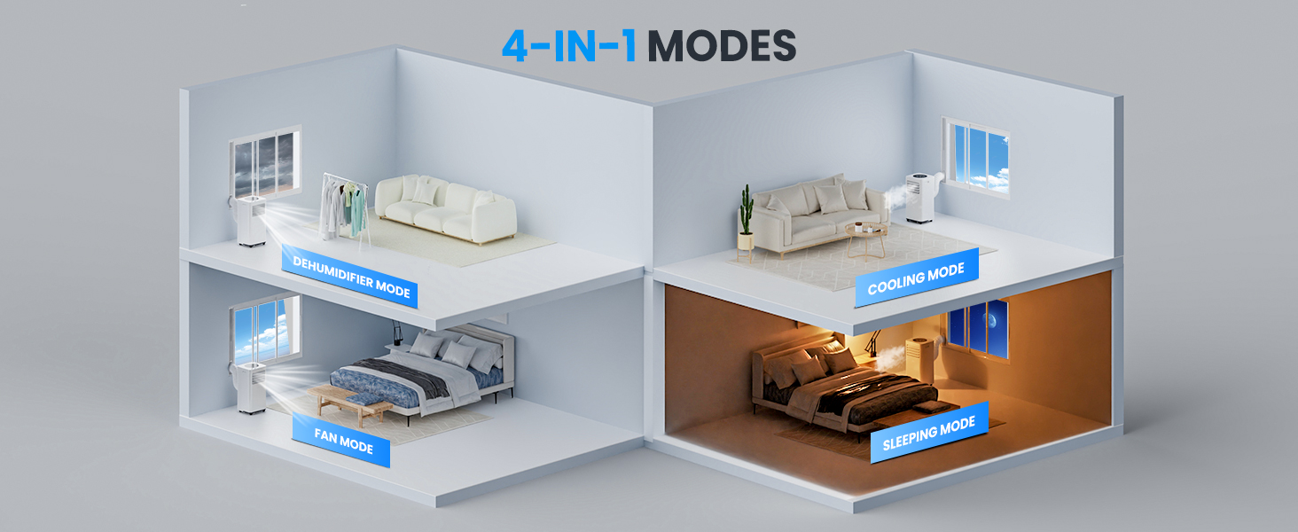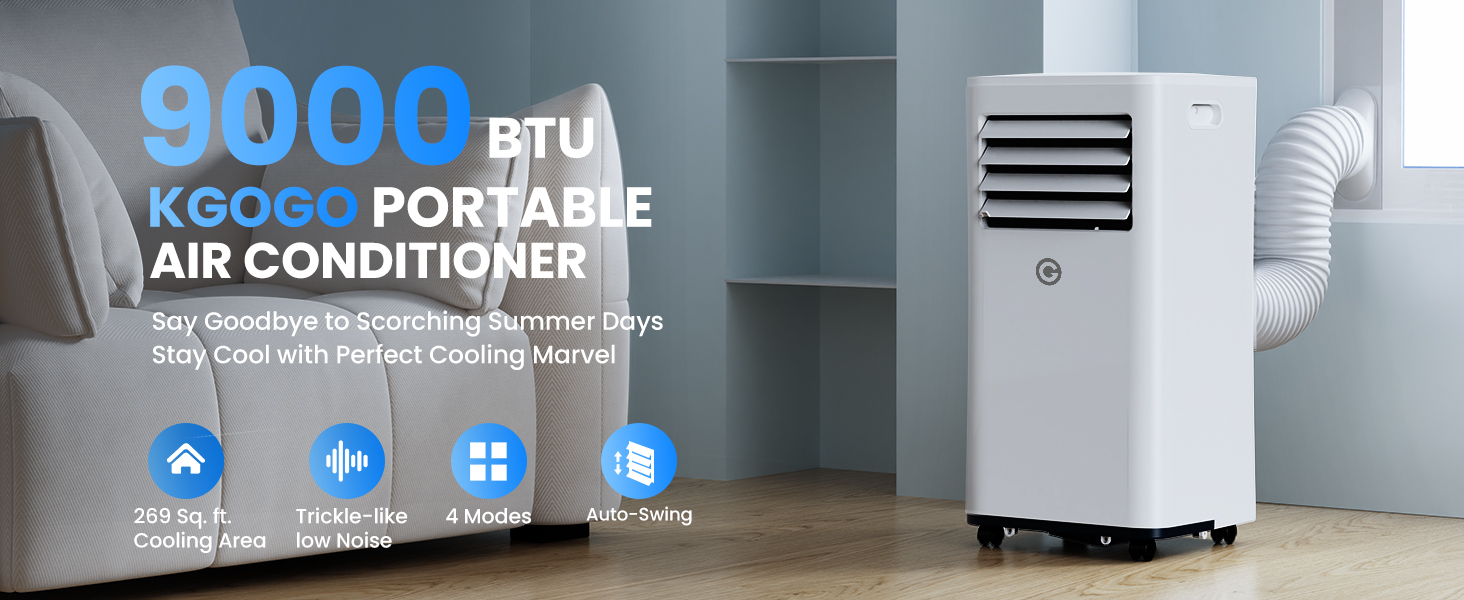 Air Conditioning Unit Portable Air Conditioner 9000 BTU 4-in-1 Dehumidifier, Cooling Fan with 2 Speeds, Digital Display & Remote Control, Window Kit